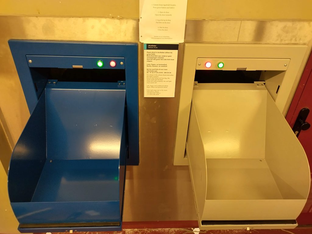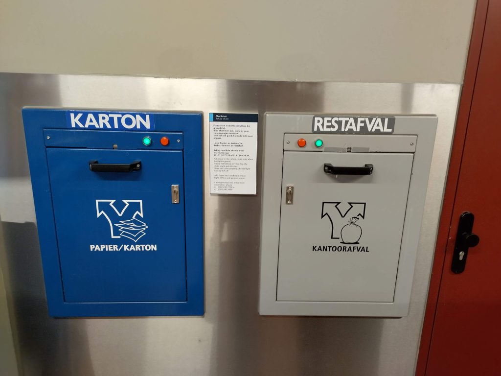 De stortkoker van Stansz speelt in dit logistieke systeem een stille maar essentiële rol. Via 30 inwerpdeuren kan afval eenvoudig en hygiënisch worden afgevoerd naar de centrale inzamelruimte. Zo blijft de dagelijkse bedrijvigheid ongehinderd, zonder afvaltransport door de gangen of liften.