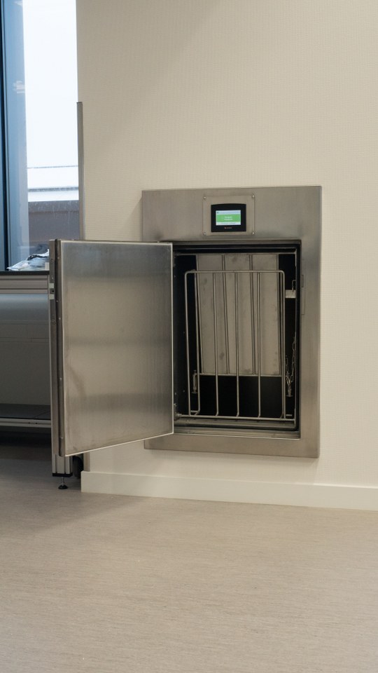 Al tijdens de ontwerpfase werd gekozen voor Stansz. Niet als bijzaak, maar als essentieel onderdeel van de infrastructuur. Het systeem strekt zich uit over twee verdiepingen en zorgt ervoor dat laboratoriummedewerkers geen tijd verliezen aan interne transporten met afvalkarren of tijdelijke opslag op afdelingen.