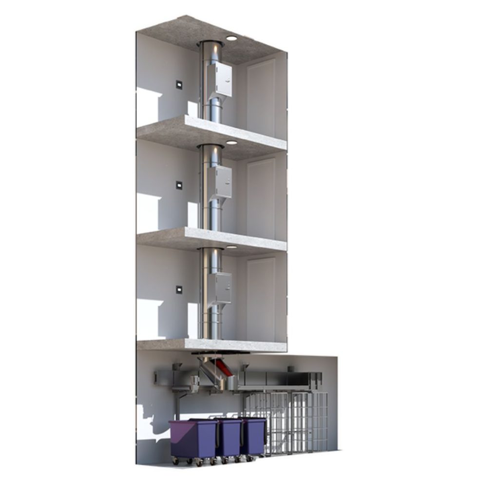 De sorteerinstallatie maakt het mogelijk om verschillende afvalstromen via één systeem af te voeren. In elk gebouw loopt een verticale buis die nauwelijks ruimte inneemt op de verdiepingen. Afval wordt op de afdeling ingezameld en gescheiden in de kelder of op de begane grond door een keuze te maken voor de juiste afvalstroom op het touchscreen.